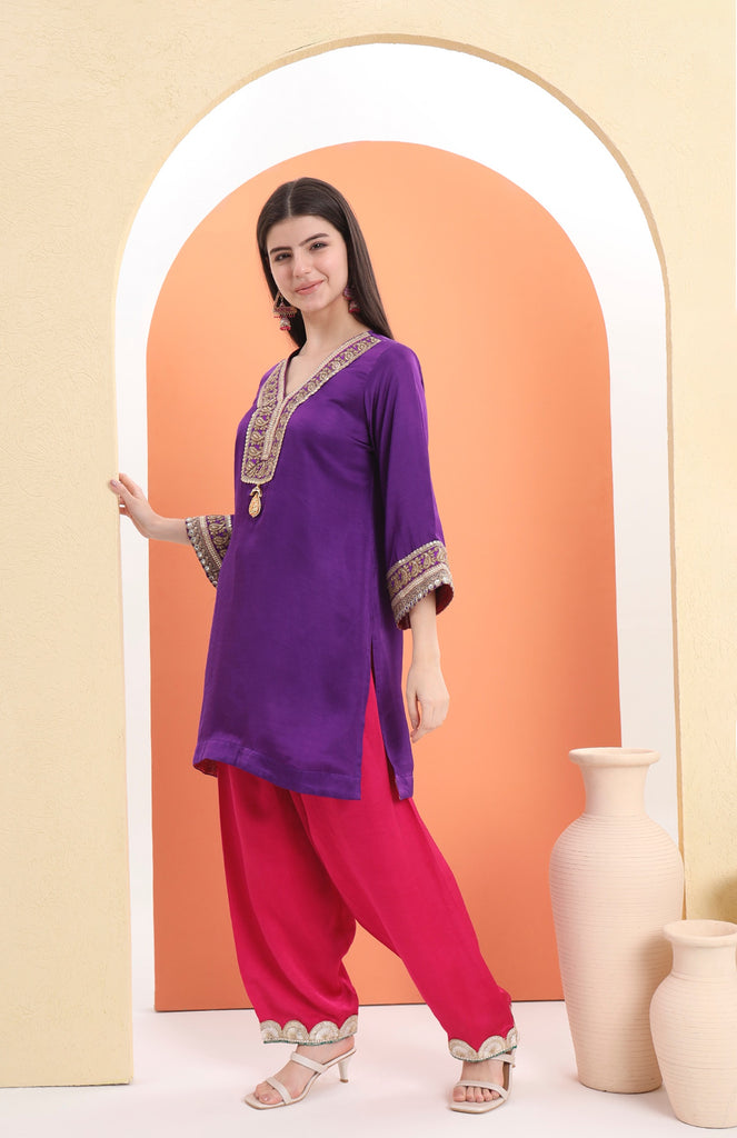 - Description- Pink Boti Velvet Kurti Salwar Set