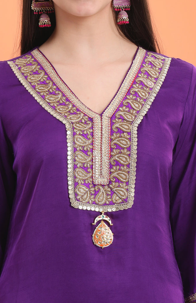 - Description- Flat Raw Silk Satin Kurta and Salwar