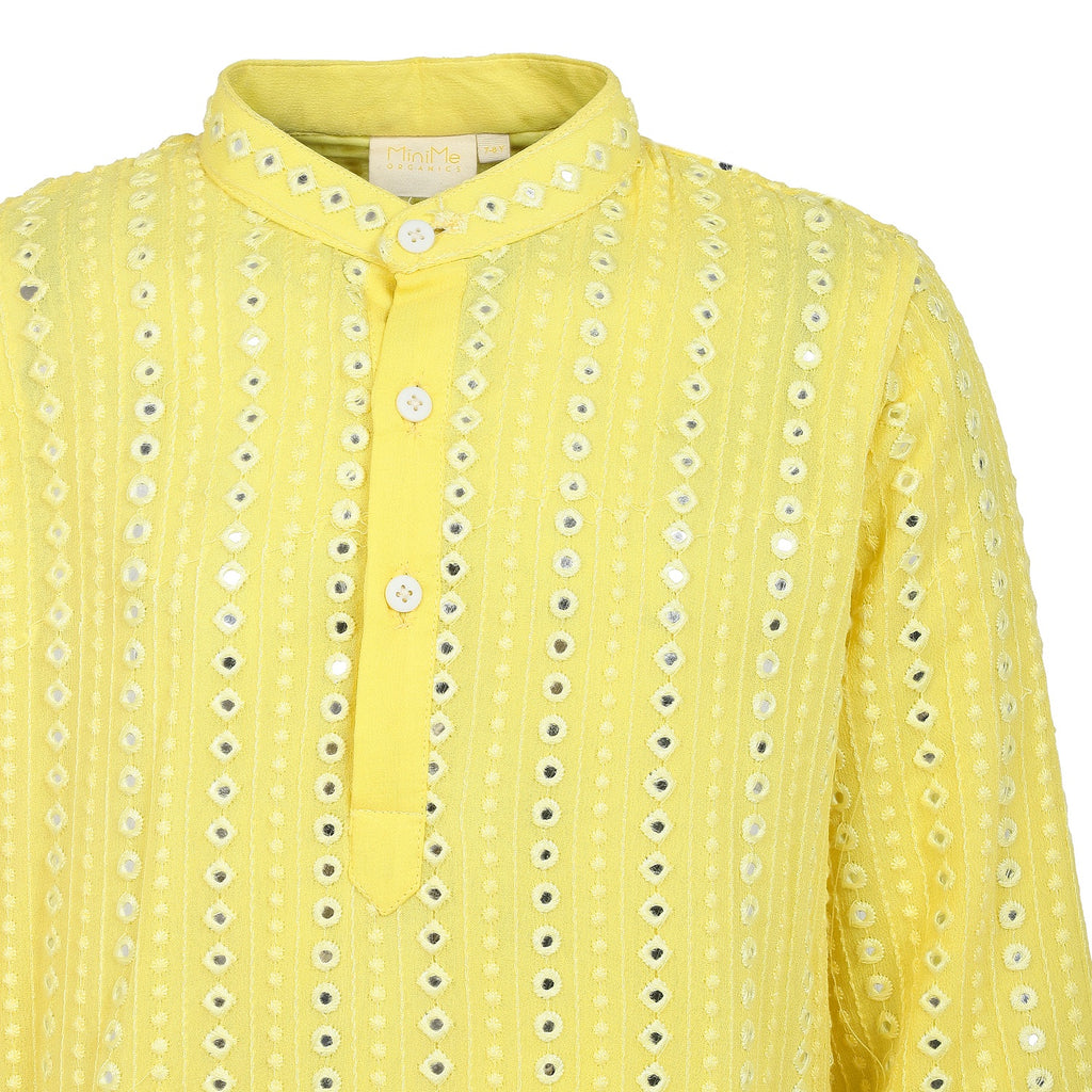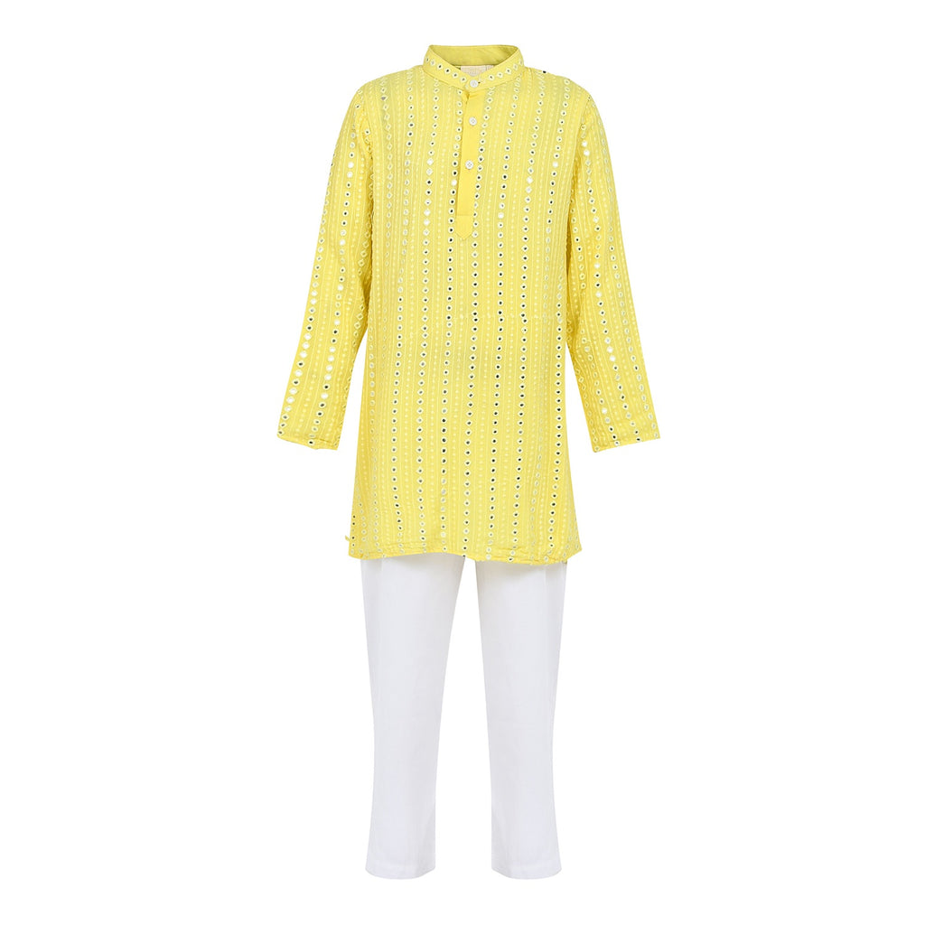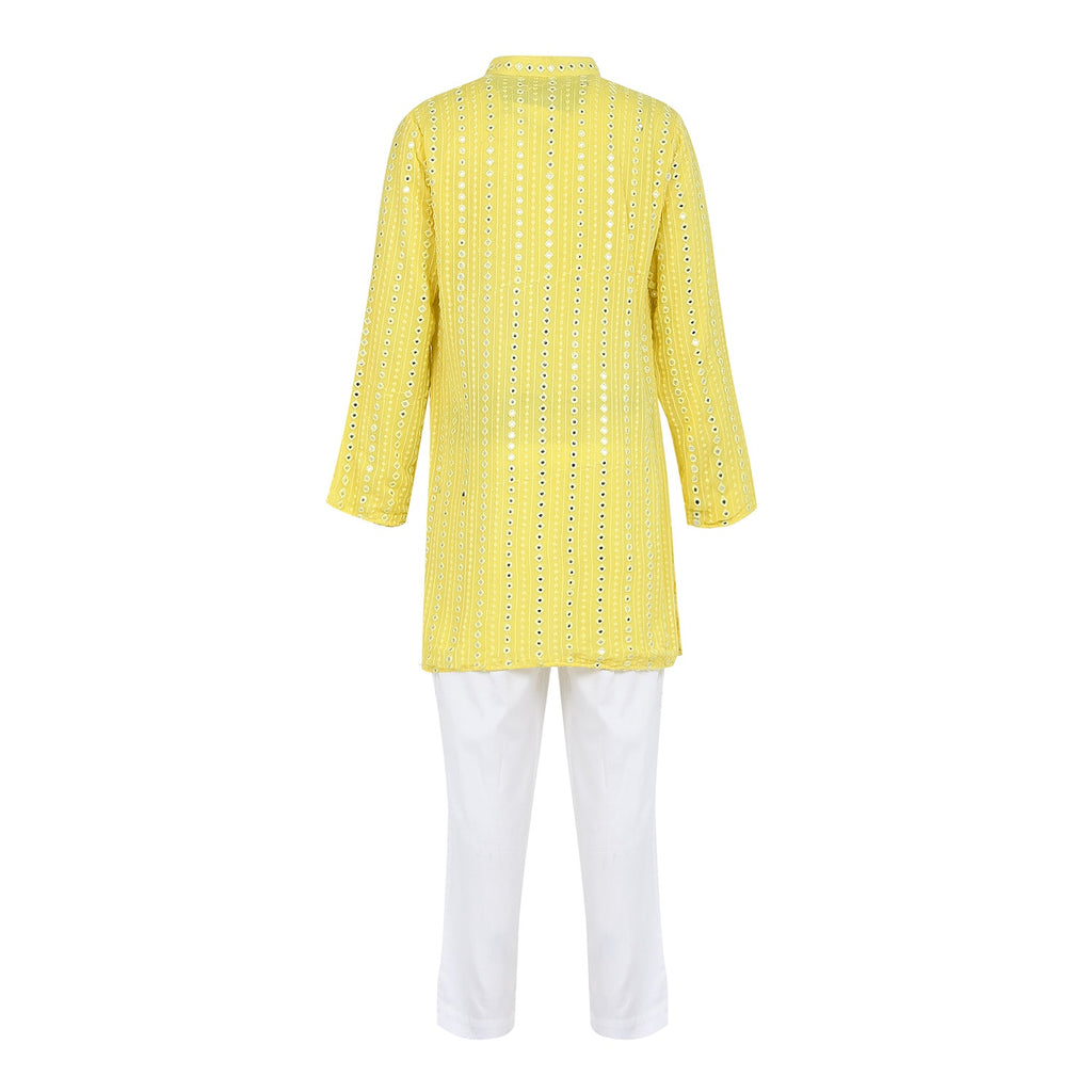 - Description- Lemon floral applique bandhgala and kurta set