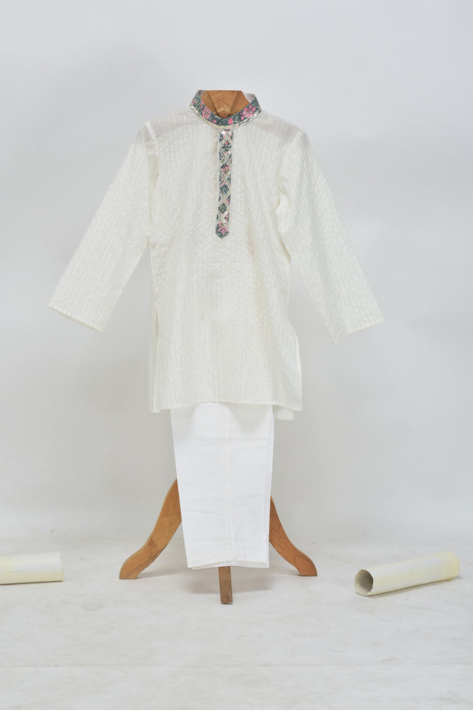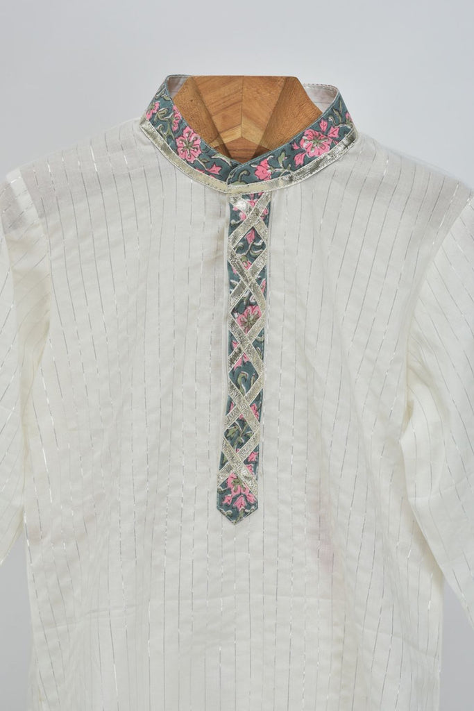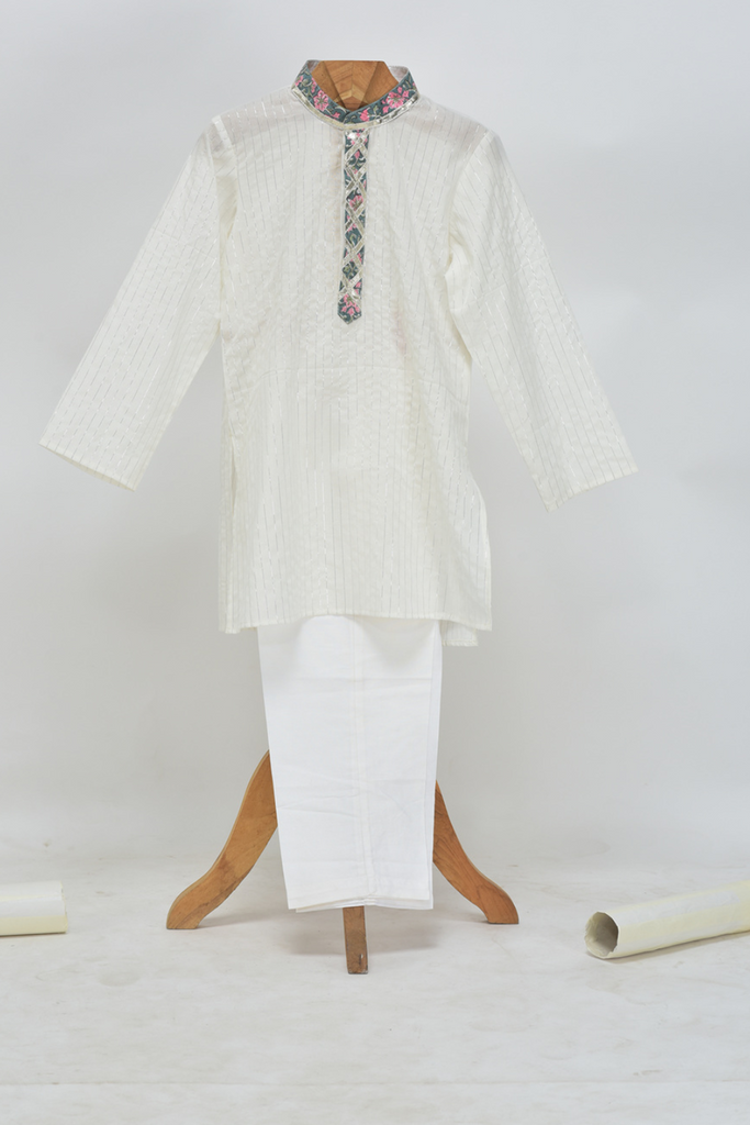 - Description- Cotton Silver Lurex Kurta and Glazed Cotton Pyjama