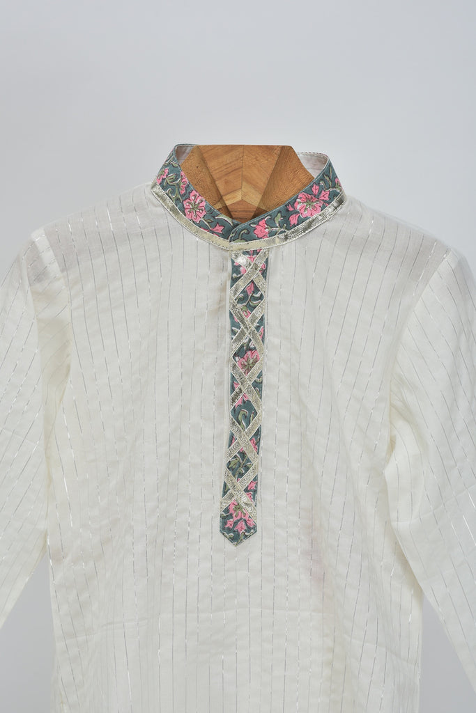 - Description- Cotton Silver Lurex Kurta and Glaze Cotton Pyjama