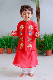 - Description- Traditional red embroidered kurta set