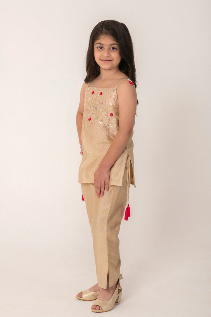 - Description- STRAPY SUIT IN GOLDEN BEIGE COLOUR WITH HAND WORK