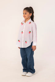 - Description- White Shirt With Cute Cupcake And Heart Embroidery