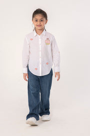 - Description- White Shirt With Cute Cupcake And Heart Embroidery