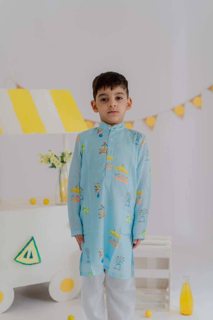 - Description- SKY BLUE CARNIVAL KURTA SET
